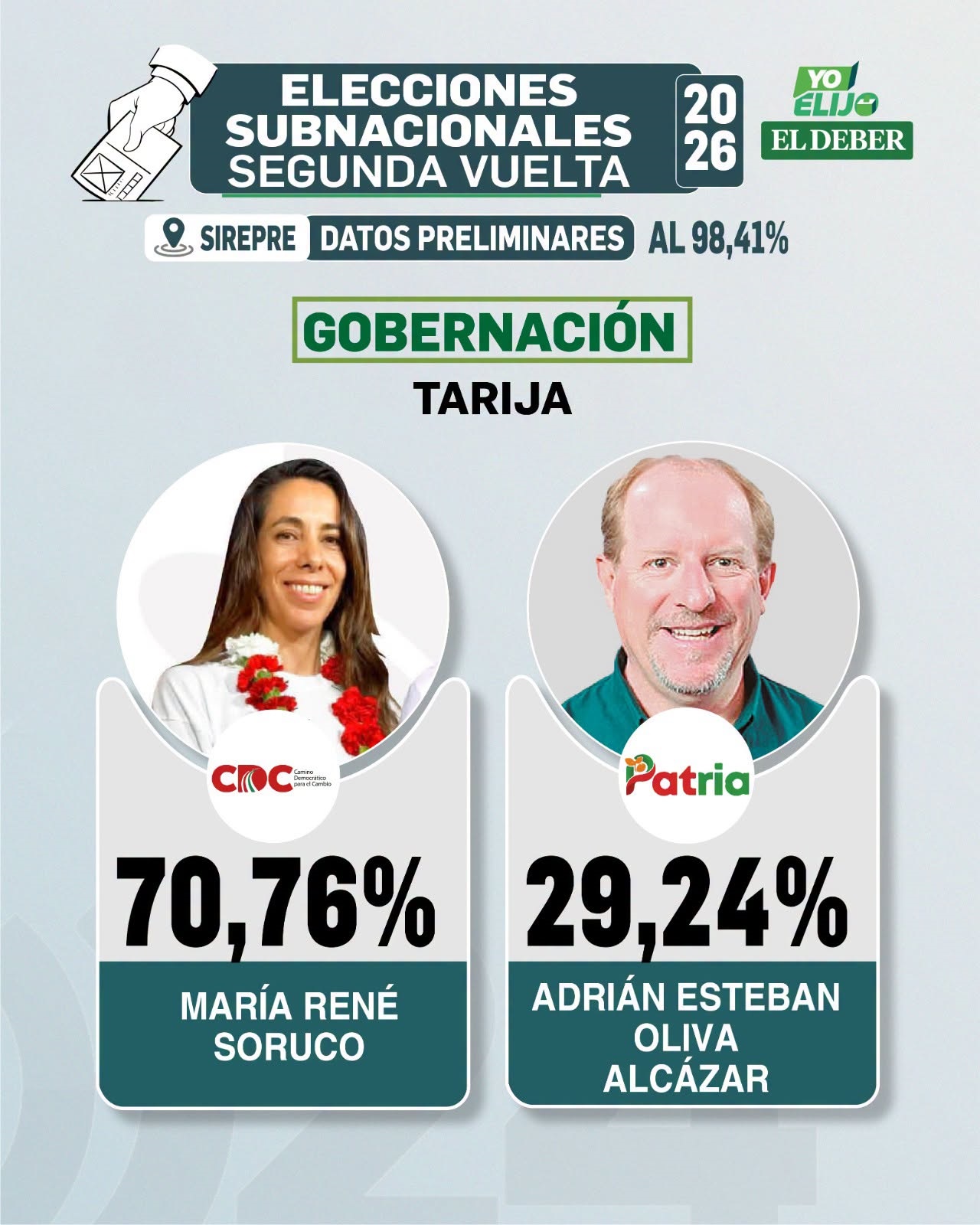 Este es el resultado abrumador con el que Tarija contará con la primaera gobernadora mujer de la historia. (Foto: RR.SS)